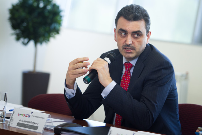 在第二届«U-NOVUS»框架内的《青年与科学》圆桌会议吸引了教育部、托木斯克地区的代表、大学校长、研究所院长、青年学者的参与。托木斯克国立大学校长爱德华·加拉任斯基在圆桌会议上就实现《博士后学院》项目做了报告,分享了学校的教育经验并参与了讨论。